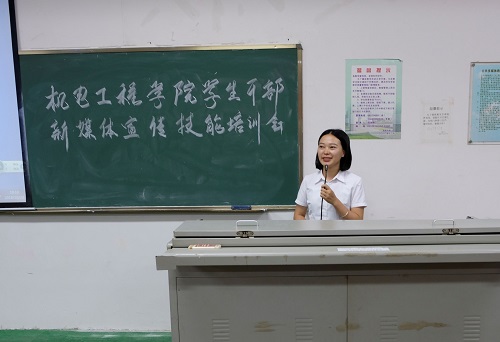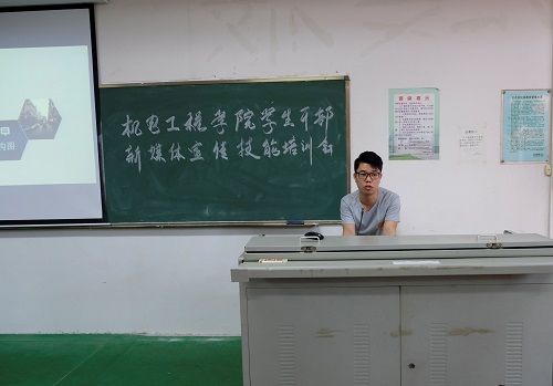 会议在热烈的掌声中拉开帷幕。林书源先行讲解,他结合自身在校组织掌握的丰富的新闻稿写作及媒体实习经历,分别以日常活动、大型活动和会议讲座三大类新闻为范例进行讲解,并介绍了新闻写作、活动拍照中的一些注意事项。