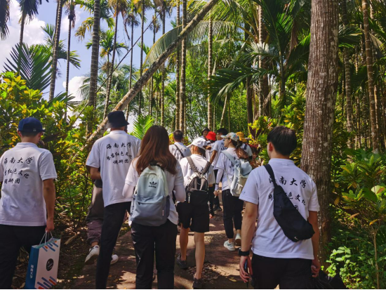 下午13点30分,调研团出发前往第二站——会山镇加脑苗寨。抵达目的地后调研团在村民委员会主任引导下进入苗寨。走访调研途中,调研团成员在村民委员会主任的介绍以及讲解下学习了解到部分苗族传统习俗。三月三青年男女对歌恋爱,由于加脑苗寨邻靠万泉河,三月三的传统习俗在这里与万泉河有了紧密的联系,青年男女以生生不息的万泉河为见证者来互表爱意;苗族人民崇尚自然,敬畏自然,他们深信万物有灵,在加脑苗寨也有着一颗树,承载着他们村里苗族人的信仰,那是村庄里年龄最大的一棵树,这颗年岁颇高的树被村中人敬称为“树神”,每逢过节,村里的苗族人会在树上系上红绸带来祈愿;走访途中,调研团还发现村里颇具特色的建筑墙体上绘有一幕幕苗族传统文化节日的场景,颇具生活气息的绘画将整个村庄装点成了一道靓丽的风景线。