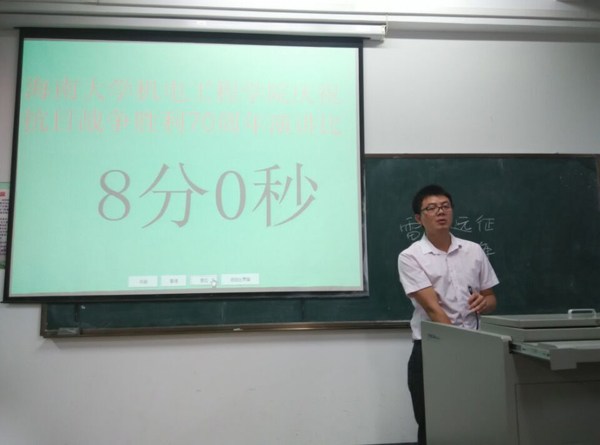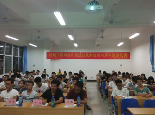 17位参赛选手饱含深情的演讲仿佛把我们带到70年前那段战火纷飞的峥嵘岁月。他们用满腔的热血表达出不让历史重演的决心;他们怀着壮士般的情怀愿意奉献自己的青春给祖国;他们坚定的眼神显示着对历史的思考。他们的演讲时而激昂有力,时而低沉婉转,精湛的技巧和诚挚的感情赢得阵阵掌声。经过紧张角逐,机电1班李岩,自动化刘明等10名选手入围决赛。