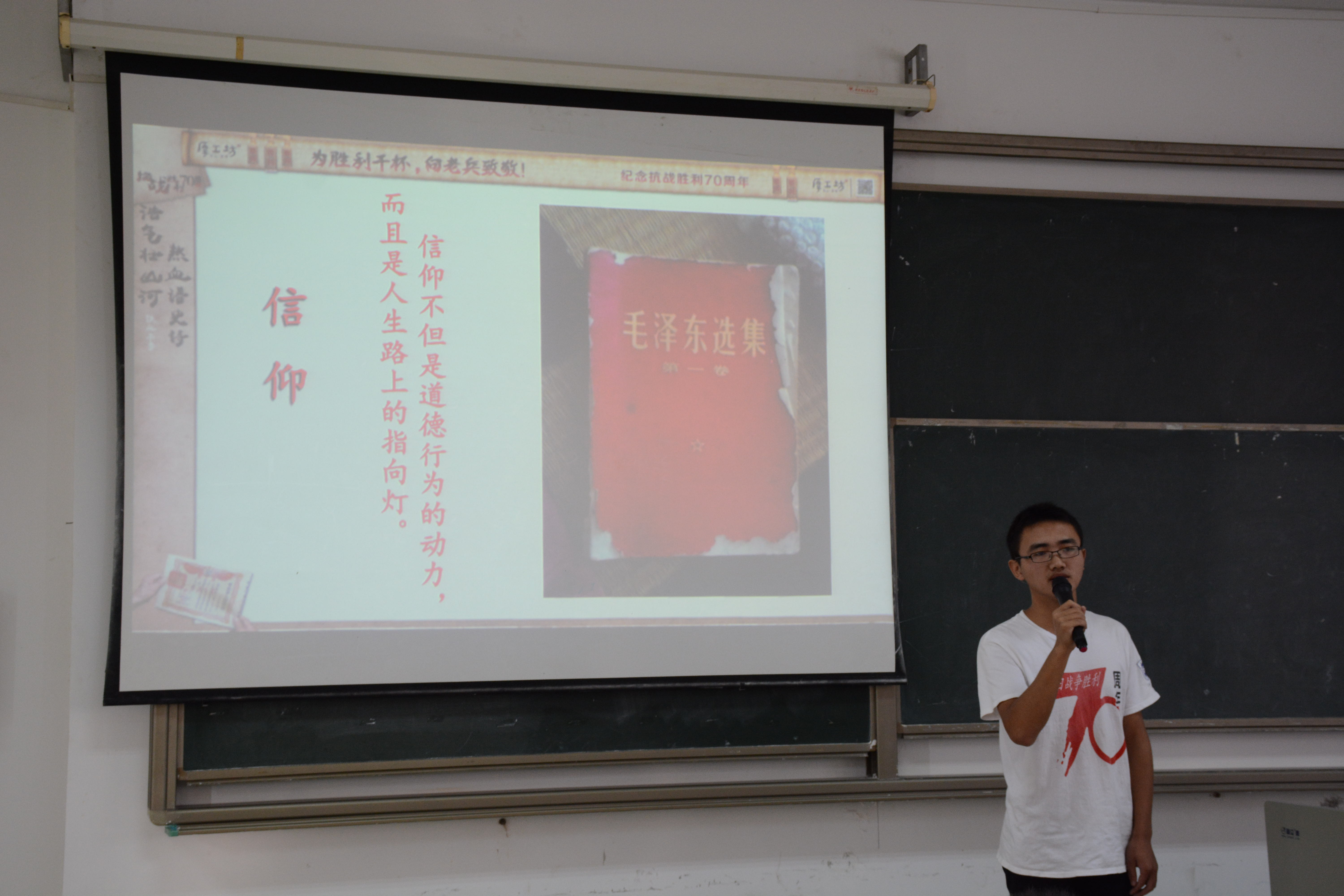 12月13日上午,在3号教学楼212课室,伟德国际“致远传承”寻访团为第十一期党课积极分子带来了一场别开生面的党课——分享了团队暑期纪念抗日战争胜利70周年寻访活动经历、体验和收获。出席活动的有辅导员崔建兵、崔万春老师,分享成员有起家林、朱凯峰、李贺、杨建平、李庆庆等五名同学。会议由机械系第一员工党支部宣传委员金杯主持。