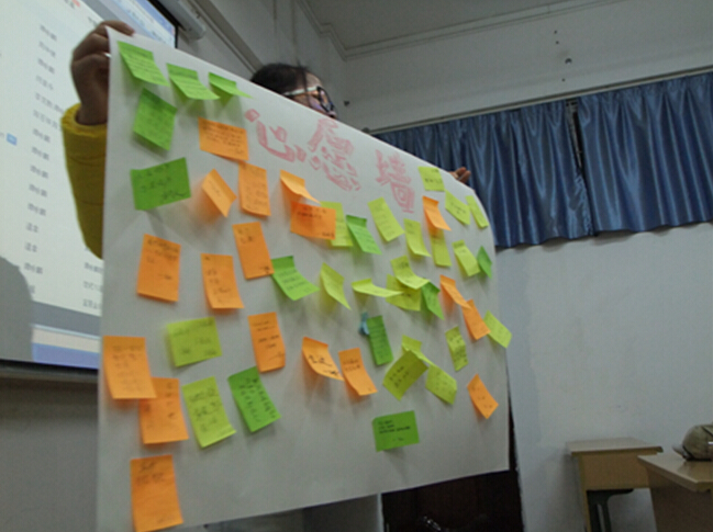 同学们在心愿墙上写下志向