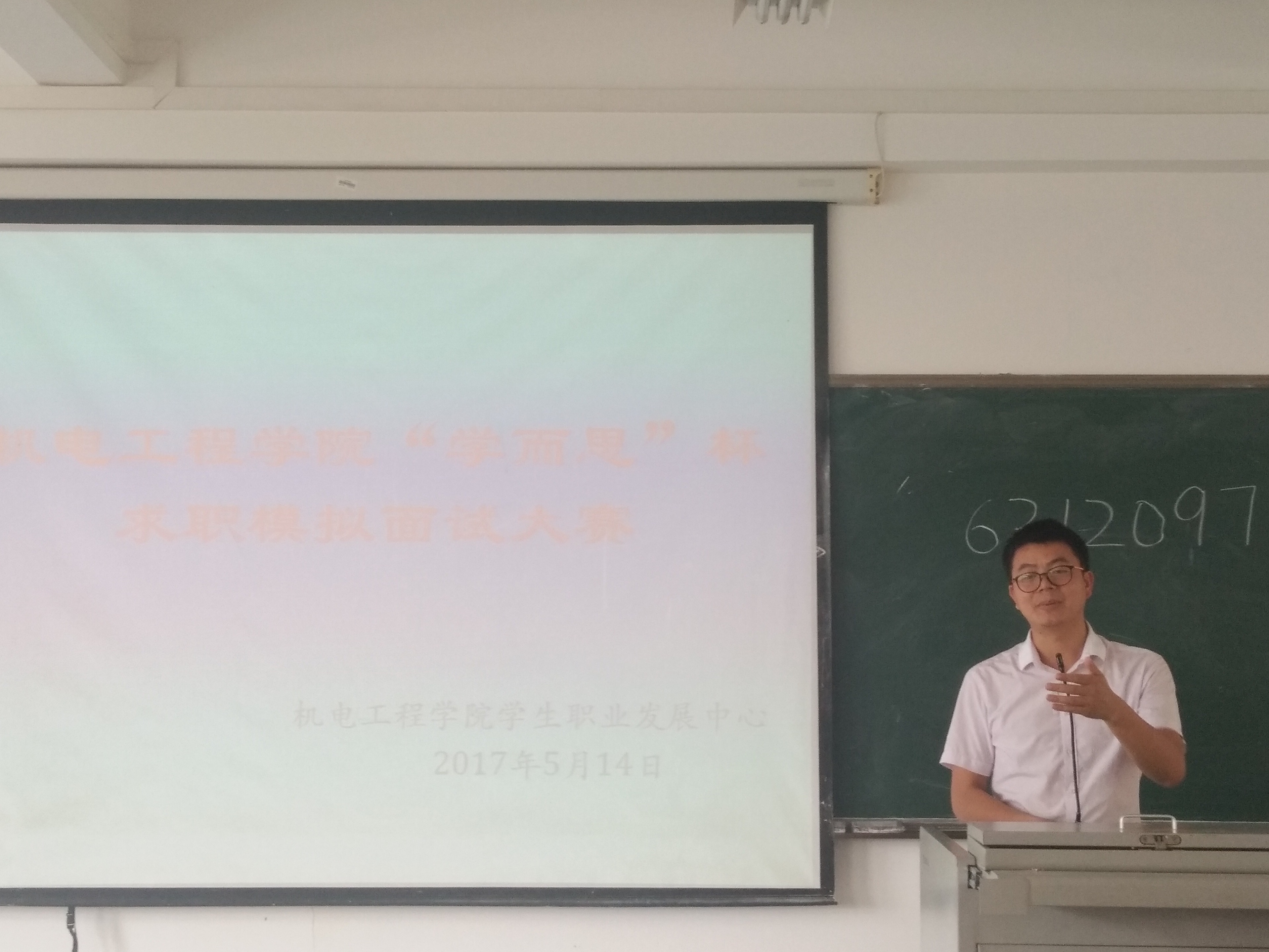2017年05月14日星期日伟德国际始于英国19464教317成功举办“学而思”杯求职模拟面试大赛初赛。担任初赛评委的有就业指导中心张海韵,土木建筑工程公司就业辅导员詹达夫,公司辅导员崔建兵,李青,傅悦五位老师,机电职业发展中心的成员和参赛选手参加比赛。