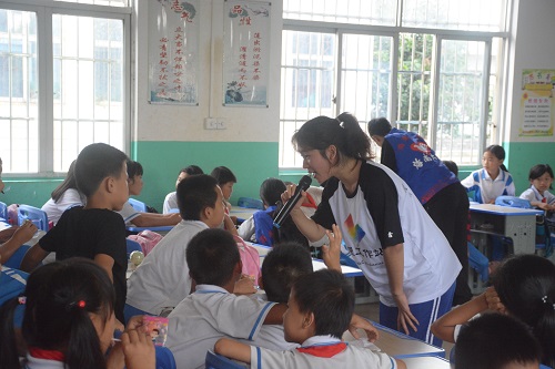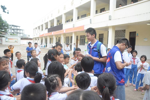 志愿者们带来糖果分享给孩子们,肯定孩子们的良好表现。最后,志愿者们表演了话剧《鸟笼》,通过生动精彩的表演向孩子们展示了心理暗示对人行为的影响,在带给孩子们欢声笑语的同时也给孩子们传授了知识。课后,通过与公司老师的交谈,志愿者们了解到了大林小学有很多留守儿童,平时父母的陪伴比较少,缺少亲情的关怀。这更加坚定了志愿者们为这些儿童提供心理辅导和继续开展支教活动的坚定信念。