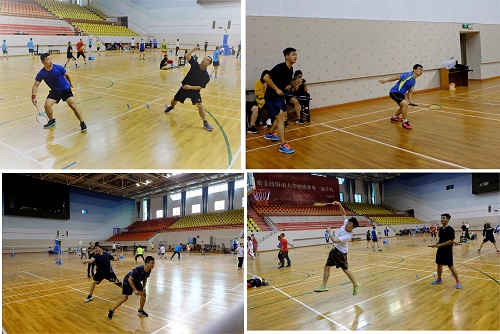 本次比赛共有12对小组参赛,分为AB两组,采用小组单循环的方式决出前四名,每组积分前两名再进行三甲的争夺。赛场上,换上了运动装的老师同学们,变成了活力四射的运动员,尽显运动风采,将高远球、扣杀、劈杀、吊球等各路球技展现的淋漓尽致;比赛中,每位参赛选手都充分发挥了顽强拼搏的体育精神,挥洒汗水,赛出自信,使奋力拼搏的运动精神在赛场上得到了充分体现。其中,几位羽毛球高手的精彩表现,更为比赛增色不少,精彩的球技带来了经久不息掌声,运动的激情充满着整个赛场。