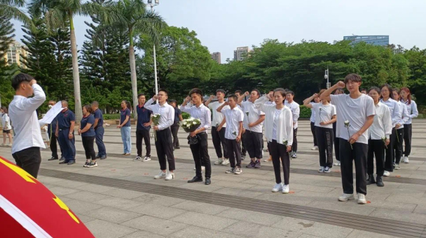活动现场,同学们看到了“解放海南的英烈永垂不朽”字样的高大石碑,带队人员对烈士陵园的相关历史进行了介绍。