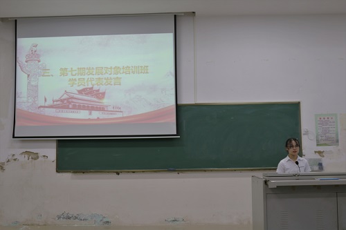 第七期发展对象培训班学员代表刘颖同学表达了自身对于加入中国共产党的向往,通过多种实践活动和员工组织任职情况,分享了在积极分子期间自身的经历与感悟,无论是心理素质还是行动能力都有着巨大的提升。她希望在本次发展对象培训班中能够学习更多党的理论知识,明确人生目标,德智体美劳全面发展。
