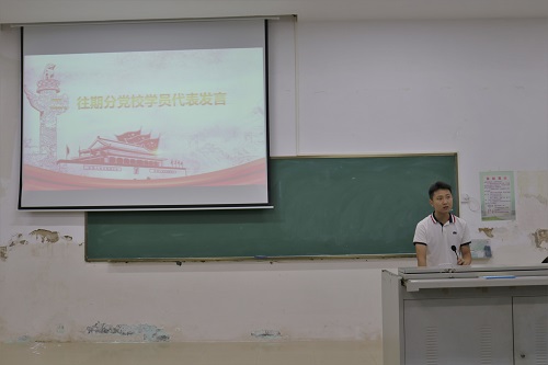 活动伊始,蒋云浩同志代表往期学员发言,他明确了自身定位,既是员工,亦是党员,员工便要专心于学业,用心于自身的发展,党员则是自身精神的寄托,是由信仰而驱动自身奉献社会的力量。他表示,发展对象培训班教会了他勇于担当,甘于奉献的精神。
