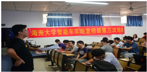 在此前进行的两次培训中,老师们分别介绍了PCB和单片机的基本功能,此次活动则重点对各组的复试题目给予提示。在培训会上,指导老师与各组成员进行交流,探讨现阶段存在的问题,并有针对性的予以解答,鼓励各小组再接再厉。随后,学长们向新队员展示上届参赛的智能小车,进行现场试跑,同学们积极围观,兴趣盎然。室内培训结束后,指导老师、学长和新队员们一同前往研发楼智能车创新实验室,实地操作解决问题。