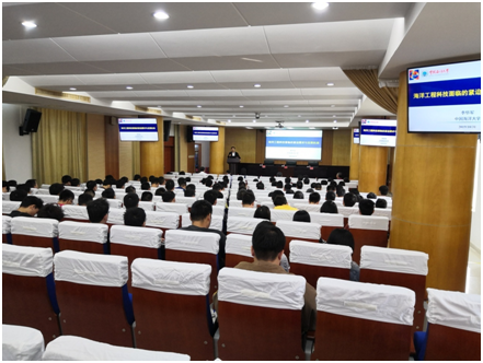 李华军院士围绕“海洋工程科技”这一核心主题,分别从海洋对人类的生存与发展、海洋开发利用面临的挑战、海洋工程科技的发展现状以及海洋工程科技面临的紧迫需求这四个主要方面进行了深入浅出、层层递进的讲解。李院士指出,海洋是一个巨大无比的能源宝库,海洋中蕴含的丰富的油气、天然气和各种矿产资源,将成为人类可持续发展的重要依托和争夺焦点。海洋开发利用还面临着诸多难点,针对海洋发展的难点给出了几点建议。首先,发挥物联网、大数据、云计算、人工智能等高新技术对海洋工程行业的推动作用,实现高端海工装备设计、建造、安装与运维的信息化、智能化。其次,创新发展海洋装备的检测、维修以及安全防护的新理论、新方法、新工艺以及新设备。最后,构建全球海洋科教合作网络,促进海洋科技发展与人才培养。在场的教师与员工代表就海洋发展与李院士展开讨论,李院士热情地一一解答了每位老师与员工的问题。
