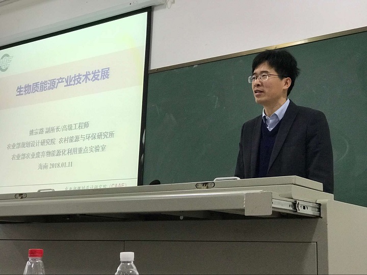 课程在同学们的热切期待中拉开帷幕。姚宗路研究员首先介绍了生物质能源相关方面的知识,使同学们认识到生物质能源存在的丰富形式、目前国内外生物质能源的发展现状和生物质能源的发展方向。随后,姚研究员以国家高度重视的畜禽粪污处理利用技术模式为例,详细全面地讲述了畜禽粪污处理和利用主要模式,用图文并茂的形式让同学们了解了生物质能源的利用与转化的重要性。同时,姚研究员还介绍了生物质热解炭气联产技术进展,以及农作物秸秆综合利用模式,以自己的切身实际生动形象地进行理论与技术的传授。授课期间,姚研究员深入浅出地讲述了有关生物质能源的各种知识,并将理论知识与实际应用完美结合,精彩的讲课赢得了同学们热烈的掌声。