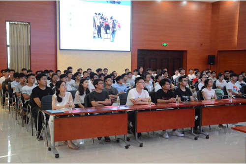 随后,围绕中国方程式大赛及公司南海车队情况,汽车系老师张建珍展开讲话。她介绍到:老员工方程式大赛,是由各国汽车工程师协会面向在读或毕业7个月以内的本科生或研究生举办的一项比赛。各参赛车队按照赛事规则和赛车制造标准,在一年内自行设计和制造出一辆在加速、制动、操控性等方面具有优异表现的小型单座方程式赛车,参加静态和动态等8项比赛。