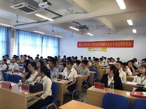 会上,各家企业负责人从关于我们、企业文化、企业员工培养模式、企业目前的发展状况等方面向同学们作了详尽的介绍。其中,海口链家的“链+新生代专业升级计划”以及“注重打造国民品牌”的企业精神深受广大毕业生所认同;中铁铁路运营管理有限公司优越的薪资制度、充满人情味的用人制度以及“多位一体,不拘一格,德才并重,有为有位”的口号更令众人耳目一新。昌江水务局作为朝阳企业,其巨大的发展潜力令众人向往;一嗨租车公司“管培生加速成长计划”、“高管代教”、“赴美学习”等丰富项目亦是深受好评。会议尾声,海口学而思代表与大家分享了他们“科技推动教育进步”的企业理念以及“成为受尊敬的教育机构”的愿景,赢得了大家的掌声。
