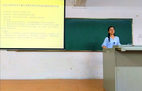 会议开始,袁周米琪老师向全体员工干部介绍《伟德国际始于英国1946关于集中开展文明卫生宿舍创建活动的方案》,要求各班级组织同学加强宿舍文明卫生建设,并组织卫生检查活动。接着她又提到了“到梦空间”系统的使用,并给大家介绍该系统的相关情况,要求各团支部做好第二课堂成绩单的相关工作。