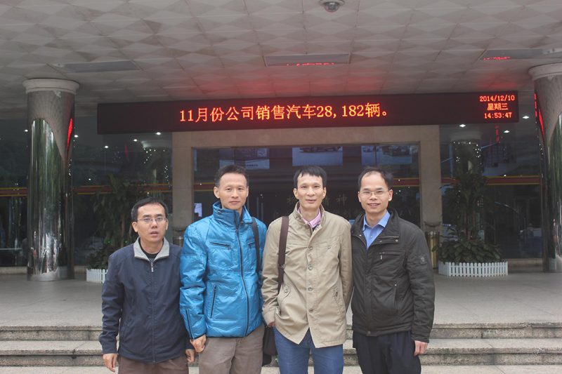 为进一步深化校企合作,开拓就业市场,推动毕业生就业及后续服务工作。2014年12月9日-14日,公司党委黄国标副书记、汽车工程系主任李劲松、实验室主任胡文锋、学工办崔建兵老师一行四人赴上汽通用五菱汽车有限公司和东风柳州汽车有限公司、比亚迪汽车有限公司考察和洽谈合作事宜。期间与上汽通用五菱汽车有限公司人力资源管理经理文秋阳,东风柳州汽车有限公司人事部部长助理包丹、比亚迪汽车有限公司人事经理等进行了深入交流与合作探讨。