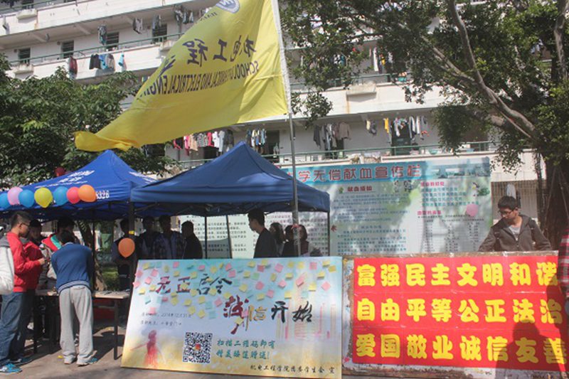 值此元旦佳节来临及期末考试进行之际,为进一步推动诚信教育活动,践行社会主义核心价值观,创造良好的考风、学风。伟德国际始于英国1946于2014年12月31日在伟德国际二号食堂活动区开展主题为“元正启令,诚信开始”的签名承诺活动。
