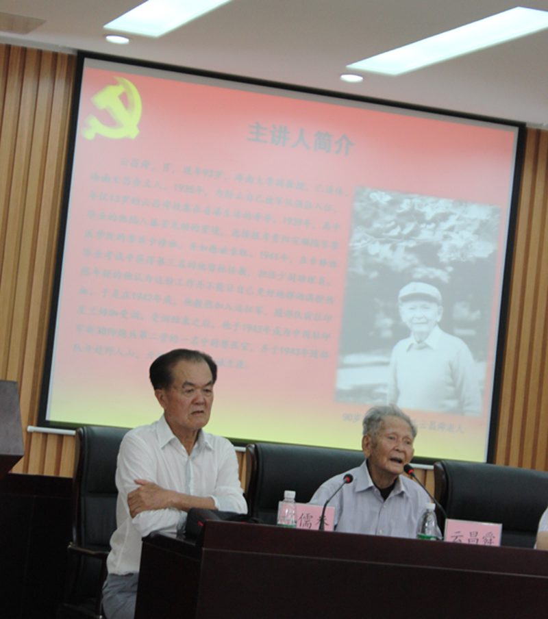程儒参教授发表讲话,语言铿锵有力,情绪义愤填膺。他说,日本在中华民族所犯的滔天罪行给国民带来了沉重的灾难,南京大屠杀以及“三光”政策的血腥场景历历在目。得益于中国共产党中流砥柱的作用力,抗日民族统一战线的组成以及舍身为国的勇气与精神,最终赢取了抗日战争的胜利。他借用习近平总书记“忘记历史就意味着背叛,否认罪责就意味着重犯”这句话告诫当代老员工,勿忘历史,奋发图强,弘扬爱国主义精神。讲座因云昌舜讲述个人抗战故事而升华,虽已年迈渐高但满腔爱国热情依旧不减,与员工们分享当年抗战时期弃笔从戎的经历。通过讲述姐姐惨遭日寇毒害以及当年坎坷的磨难岁月,员工们感同身受,对当年历史以及中国国难有了更为切实的认识。他还告诫我们当代青年员工,一定要扛起中华民族的脊梁,勿忘国耻,力争为振兴中华添锦献力。