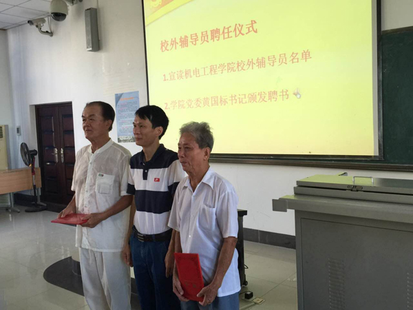 黄国标书记向公司特聘校外辅导员王荣、程儒参教授颁发聘书