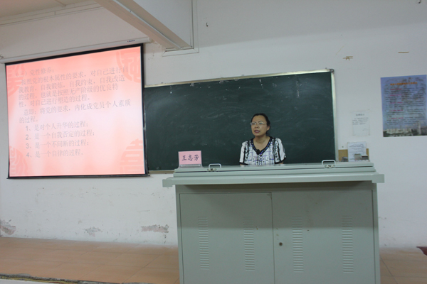 开课仪式结束后,黄国标书记以“端正动机,入党光荣”为主题开始培训班第一课。他从近代中国发展和民族复兴的历史入手告诉大家历史是一面镜子,以史为鉴可知中国共产党是历史的正确选择。接着,从党的性质、党的宗旨、党的理论指导思想三方面论述了党的相关理论知识并论证了中国共产党是用科学理论武装起来的、始终保持先进性的党。最后,号召每位同学都要端正入党动机,珍惜学习机会,自觉学习党章、贯彻党章、拥护党章;坚持用党员的标准要求自己,立足自我,扎扎实实做好本职工作,以自己的实际行动向党组织靠拢。