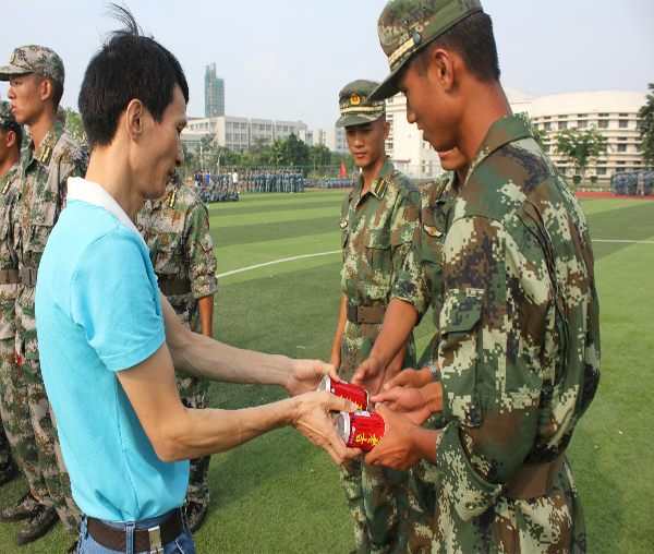 随后,公司领导为军训教官送上了饮料,感谢他们辛苦带教。班主任与员工干部为每位新生送上了饮料,同新生一同交流。现场气氛热烈,其乐融融。