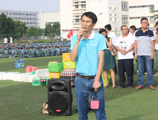 9月13日下午,公司党委书记黄国标、副书记李宏、副经理马庆芬、全体辅导员、15级新生班主任、员工干部等一行人来到军训场地,看望训练中的教官与全体新生。
