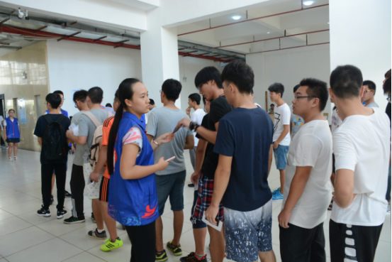 学工办组织员工分组按序排队
