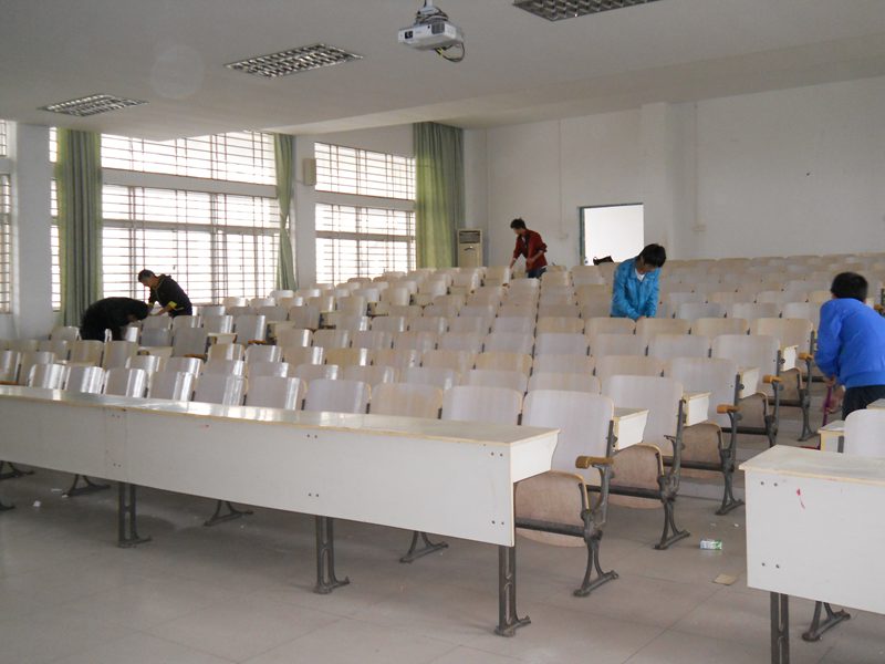 12月9日中午12:00,20余名志愿者前往活动地点, 按照活动安排,志愿服务队分为两个小组,分别展开“文明用餐”与“卫生清洁”两项活动。活动期间,第一组志愿者对在二食堂就餐的同学们不遵守食堂用餐规则,用餐后不自觉回收餐盘的不文明举动进行劝导,并呼吁广老员工在文明之墙留下自己的承诺。于此同时,第二组志愿者对三号教学楼的211和212教室进行了彻底的清扫,包括地面清洁、桌椅清洁等,志愿者们分工合理、配合默契,最终为莘莘学子们留下了干净整洁清新的211和212教室。