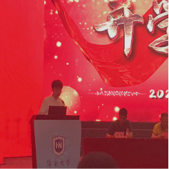 汽车工程系教授甄海生代表全体教师发言。他鼓励员工多学习多了解多想象,争做新学科、新思想的传创者。他希望同学们厚植理想,志存高远,脚踏实地,不断解锁新技能,不断提高个人素养,做出真贡献。