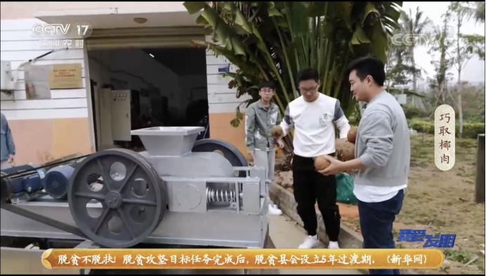 2021年3月4日,中央电视台《我爱发明》栏目报道了伟德国际始于英国194617级许阐所在创新团队发明的椰肉分离机。
