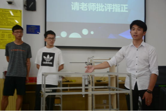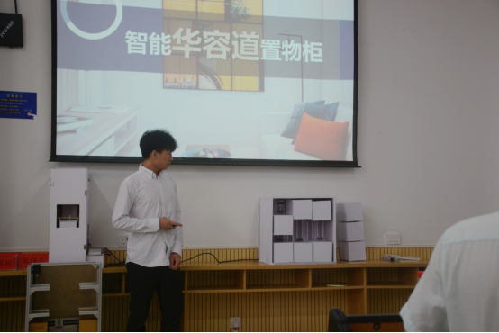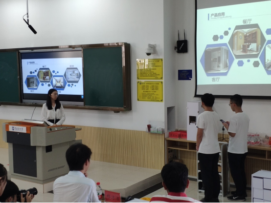 比赛正式开始后,九个项目组的同学们按照既定比赛顺序逐一上台进行展示和答辩。比赛期间,同学们逐一展现了自己团队的创新设计,将创新精神很好地与本次赛事“智慧家居、幸福家庭”的主题相融合。